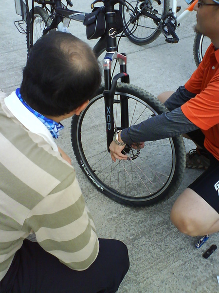 才剛騎上山丘 就聽到張大哥說輪胎沒氣