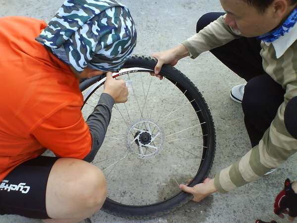 拆了輪胎 找到破洞 用砂紙清潔 貼上貼布 再裝回輪子